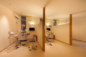 患者さんへ痛くて怖い印象を与えないようにというコンセプトを最後まで崩さずに、風格のある歴史的な街並みに溶け込みながら少し新しく優しい印象も与えたいと思いました。一人一人の患者さんへ丁寧な治療をしたいとのことで、スタッフの動線なども考慮して半個室のスペースも広めにゆったりとさせています。 (PHOTO 野田東徳)(照明 ライティングデザインスタジオLUME)