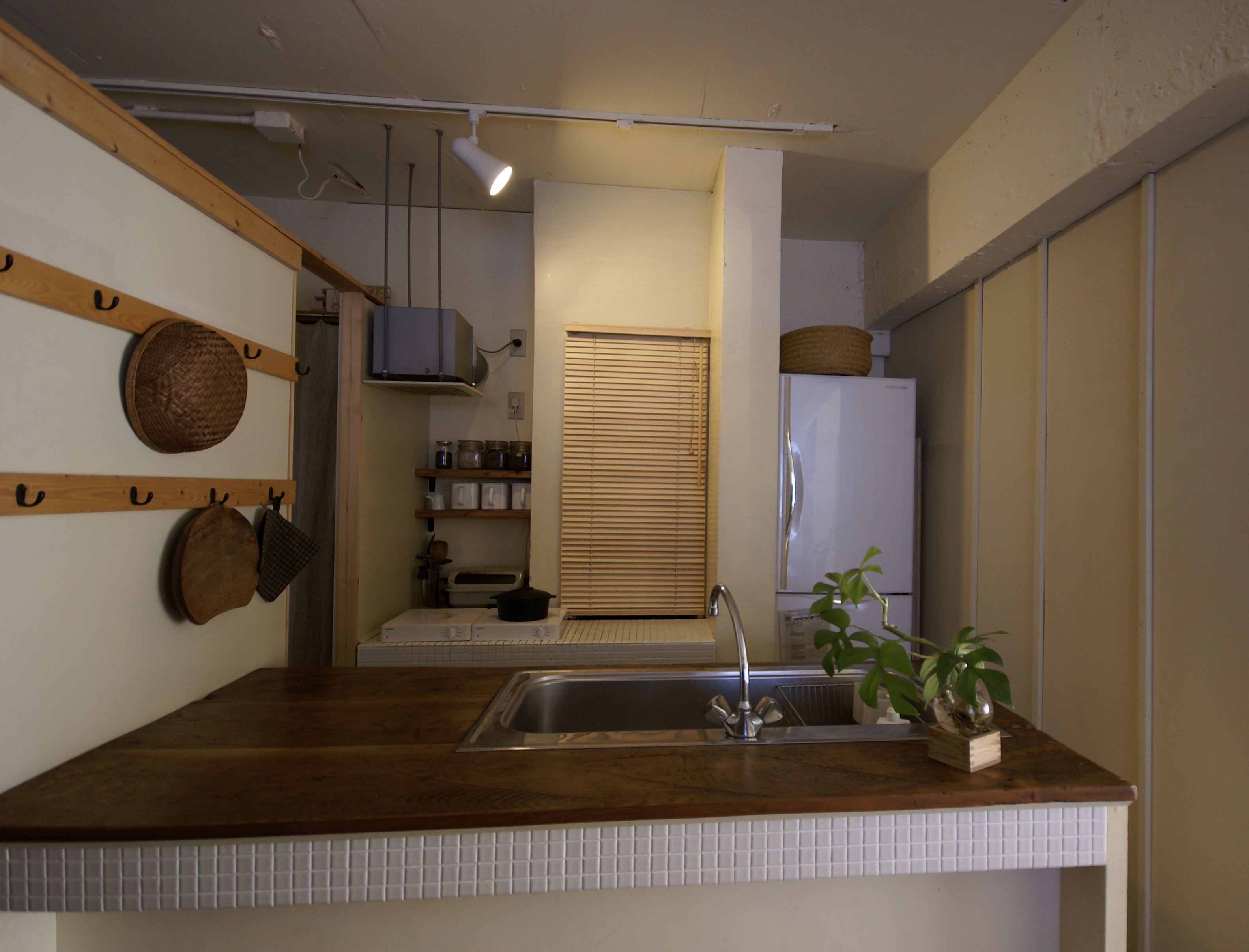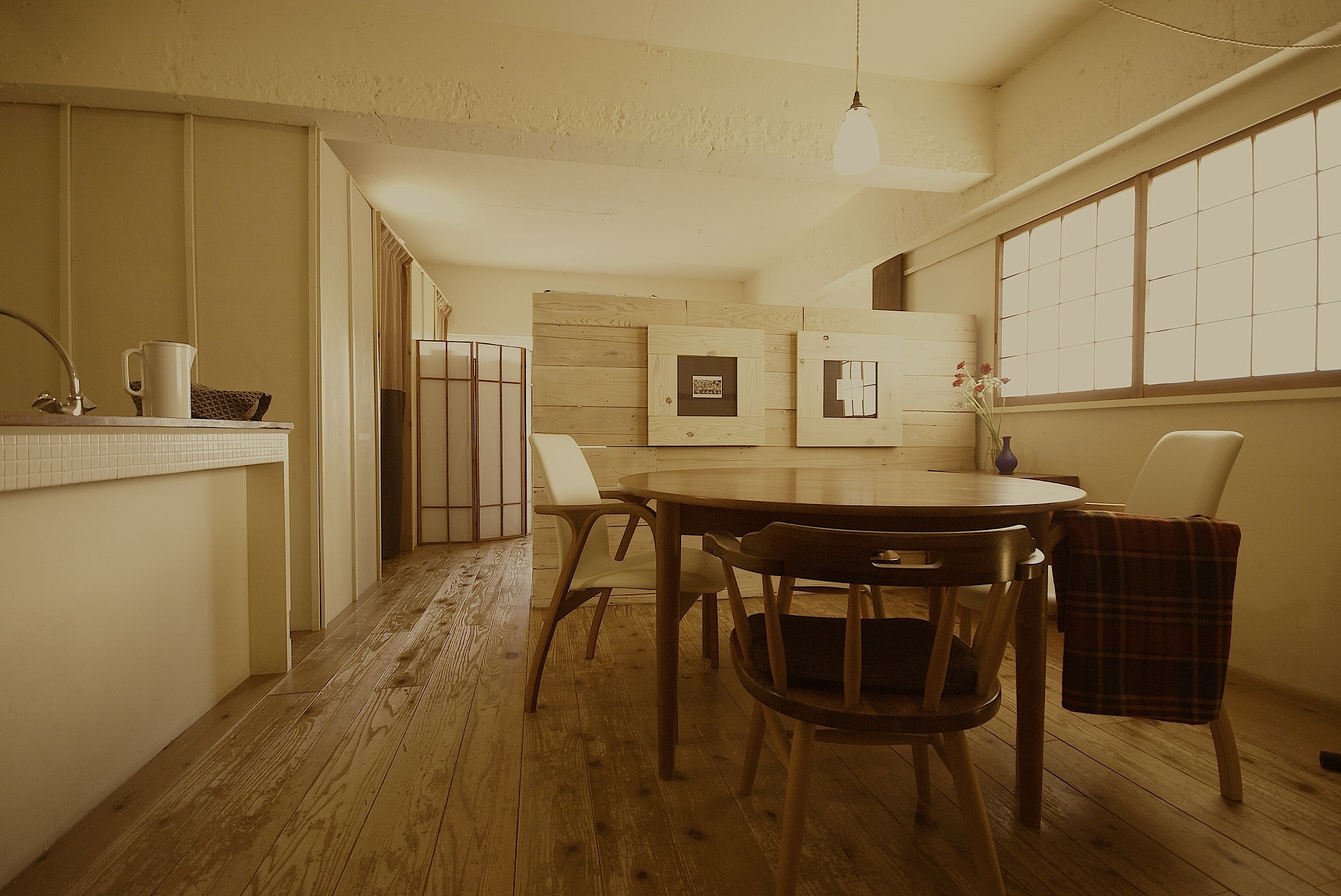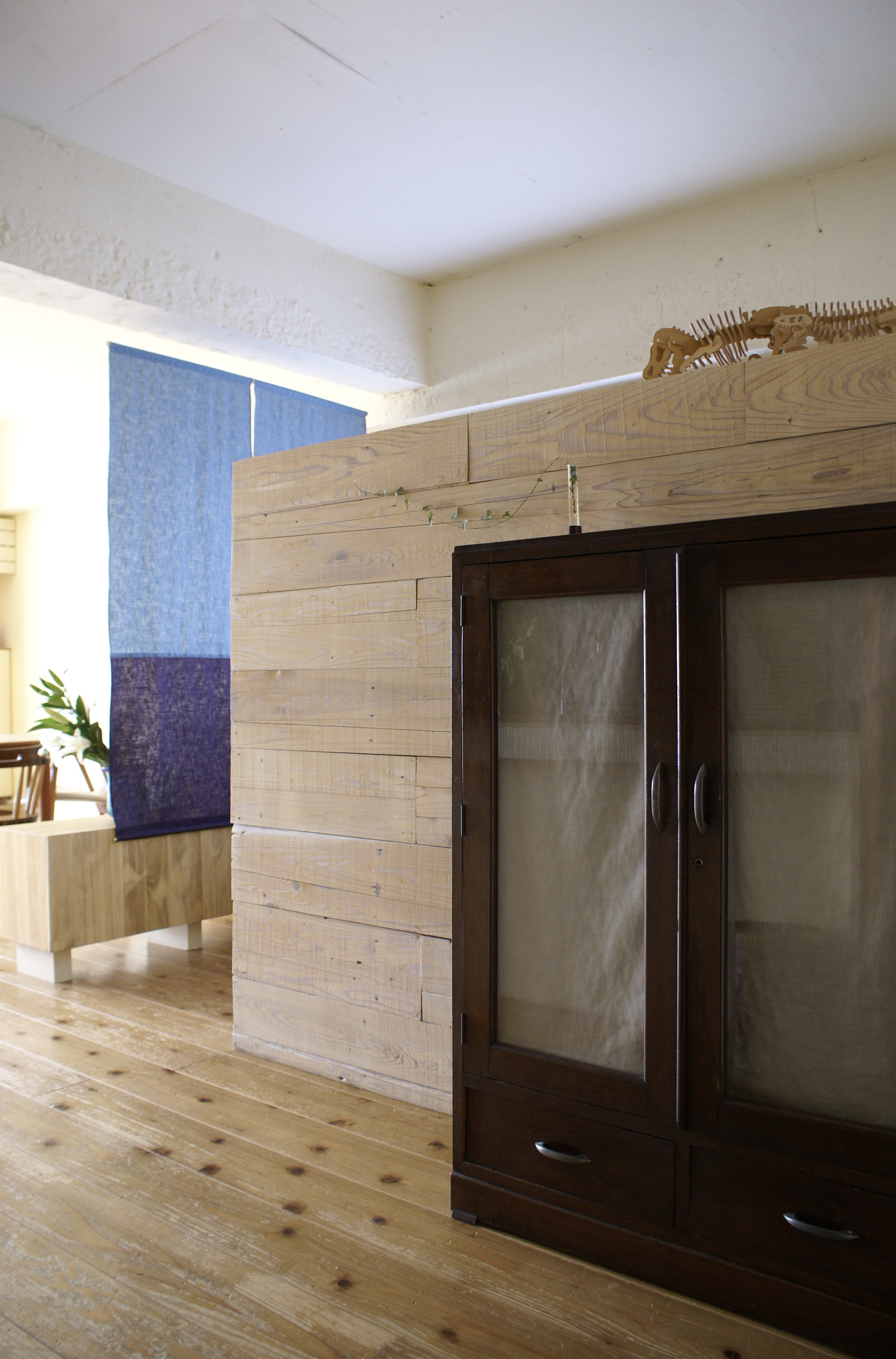 もとは和室のリゾートマンション。障子や畳下地の杉板を再利用して少し懐かしい雰囲気に。海と富士山が一望できる明るい空間になりました。